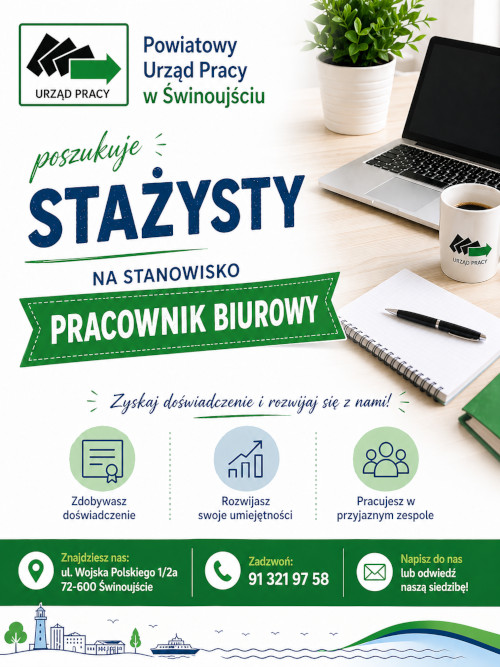 Powiatowy Urząd Pracy w Świnoujściu poszukuje Stażysty na stanowisko pracownik biurowy (K/M)