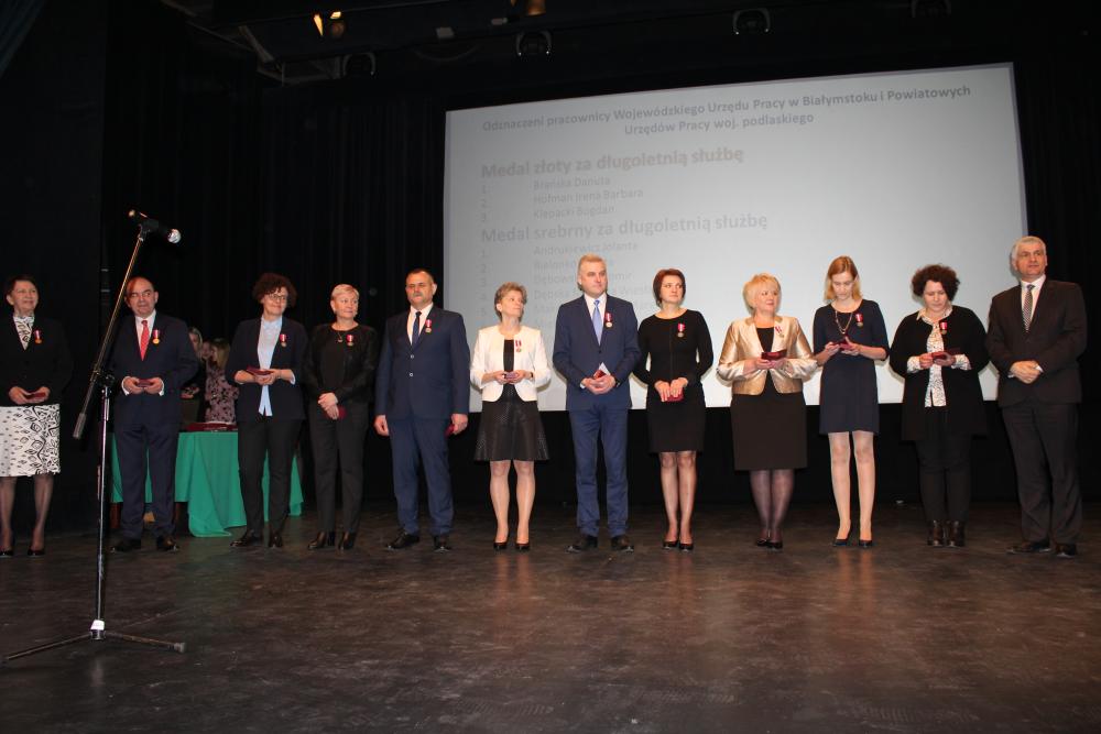 Z okazji Dnia Pracownika Publicznych Służb Zatrudnienia, w trakcie konferencji miało miejsce uroczyste wręczenie przez Wojewodę Podlaskiego Pana Bohdana Paszkowskiego pracownikom publicznych służb zatrudnienia województwa podlaskiego – Złotych, Srebrnych oraz Brązowych Medali za długoletnią służbę.